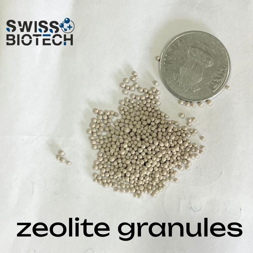 These Probiotic-Coated Zeolite Granules offer a powerful and targeted solution to control ammonia, hydrogen sulfide (H₂S), and toxic gases from the pond bottom. Formulated with uniform 3mm high-surface-area zeolite granules, each particle is coated with select beneficial probiotic strains that activate upon contact with water, creating a dual-action effect: adsorption + microbial degradation.